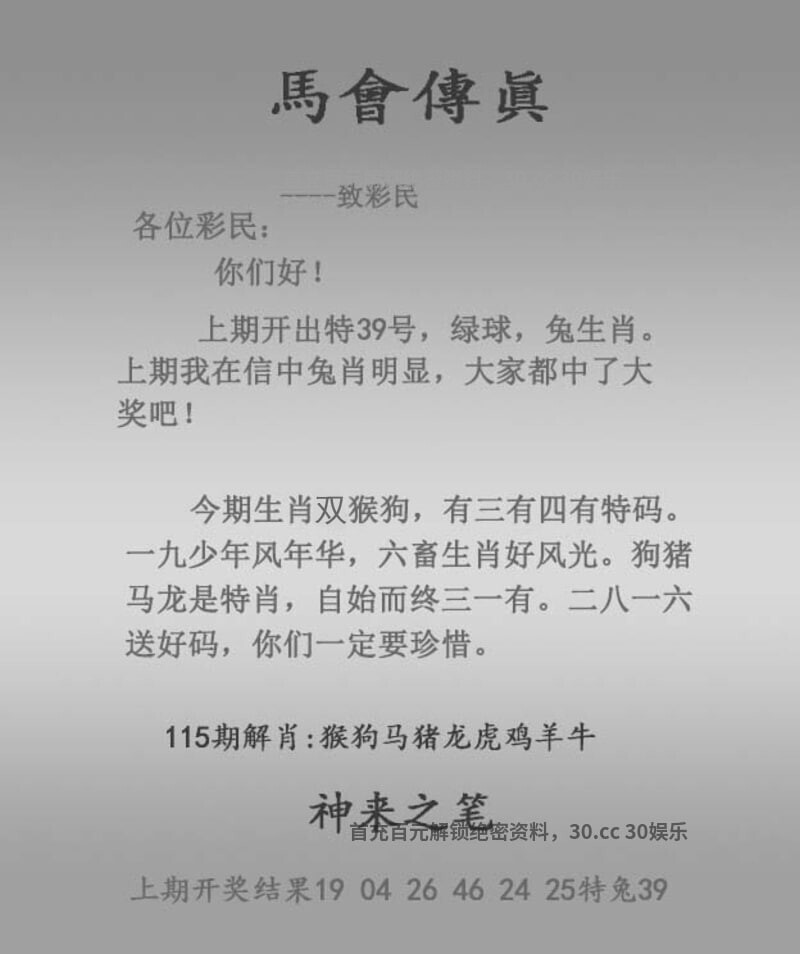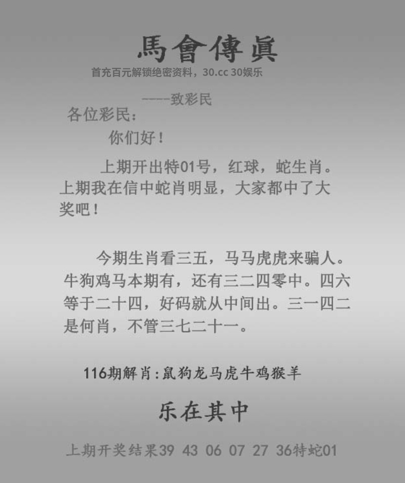 | 116期:马会传真解析: 今期生肖看三五,马马虎虎来骗人 牛狗鸡马本期有,还有三二四零中 四六等于二十四,好码就从中间出 三一四二是何肖,不管三七二十一 乐在其中 解:今期生肖看三五,马马虎虎来骗人,35羊,明肖马虎,牛狗鸡马本期有,还有三二四零中,明肖牛狗鸡马,四六等于二十四,好码就从中间出,24马,三一四二是何肖,不管三七二十一,31猪,42鼠,21鸡。 综合生肖:羊马虎牛狗鸡猪鼠猴 |